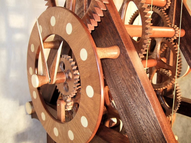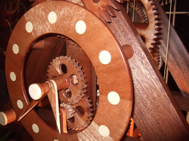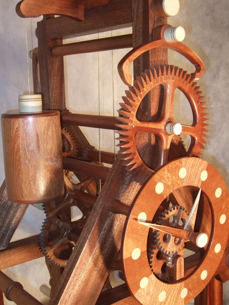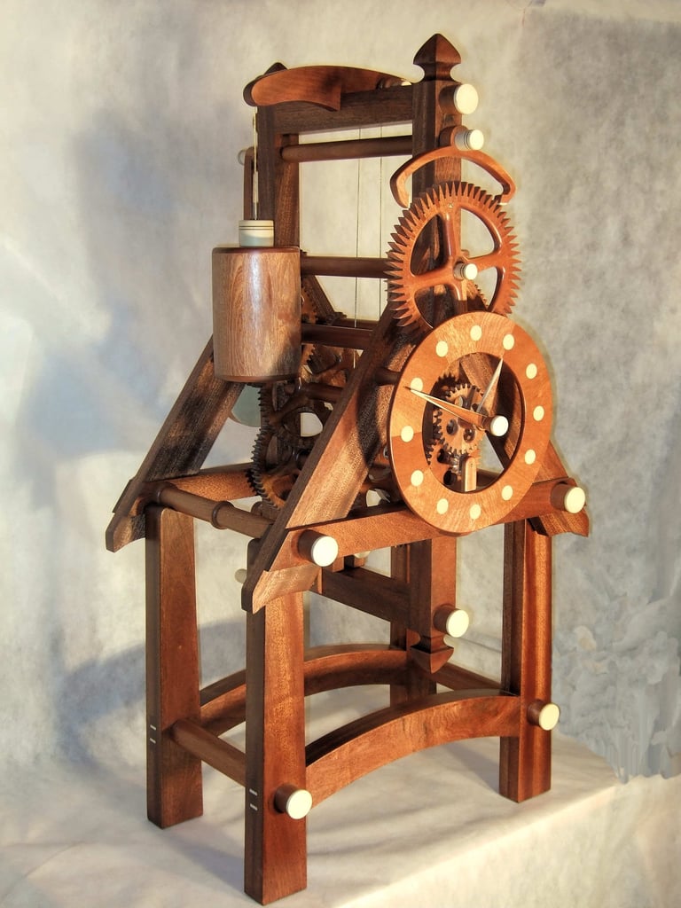 The M6 was a collaborative effort with a TimberFrame company in Dandridge, TN. The challenge here was gear design for a long distance location with vastly different weather than Rochester, NY. Two days after delivery, every gear developed a crack! Ouch! Not ready for prime time. It was this incident that prompted 6 months of intense gear redesign and fabrication. The good news - I solved the problem. In fact, the redesigned gears are now a feature in every clock since M6.