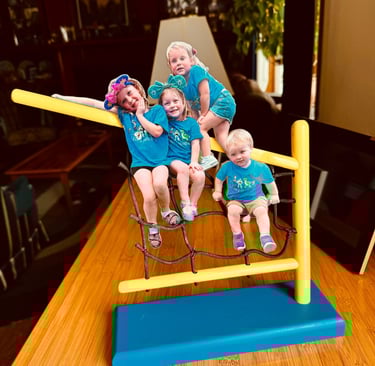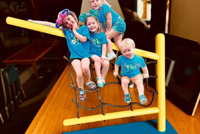 Have some really great photos of the grand kids in DeLand. This one was taken during a day trip to Disneyland, not far from their home. The photo is cut out and the structure that the kids were sitting on was recreated here, with some artistic license! Was hard to mimic the rope!!! Gave this one to daughter Patti Rose (her kiddies) and it's proudly displayed somewhere in the home!! Hope the kiddies can't get at it.